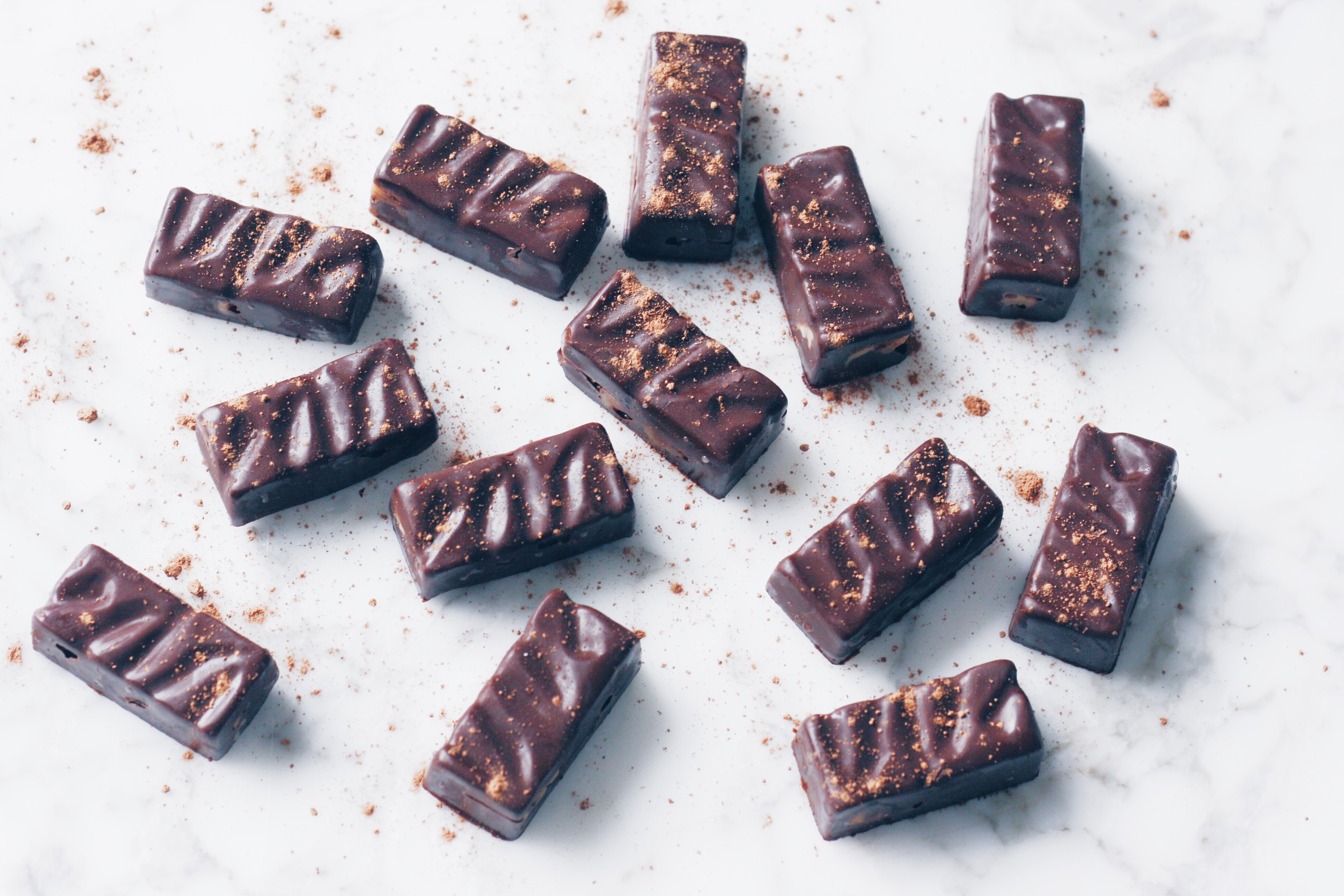 - Ef að þú átt ekki konfektform er auðvitað hægt að setja karamelluna í ferningslaga form og frysta hana þannig. Þá skerð þú hana svo í litla teninga og dýfir henni í súkkulaðihjúpinn og frystir síðan aftur. En karamellustangirnar verða að geymast í frysti og bráðna fljótlega við stofuhita.